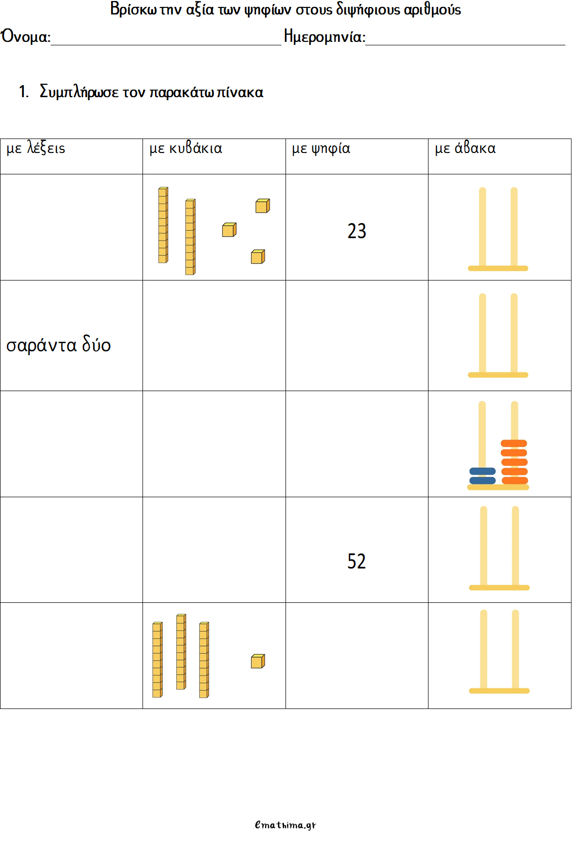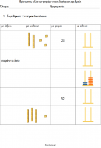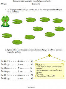 Δεκαδικό σύστημα αρίθμησης: αξία θέσης ψηφίου/ σύγκριση, διάταξη διαχείριση διψήφιων αριθμών.