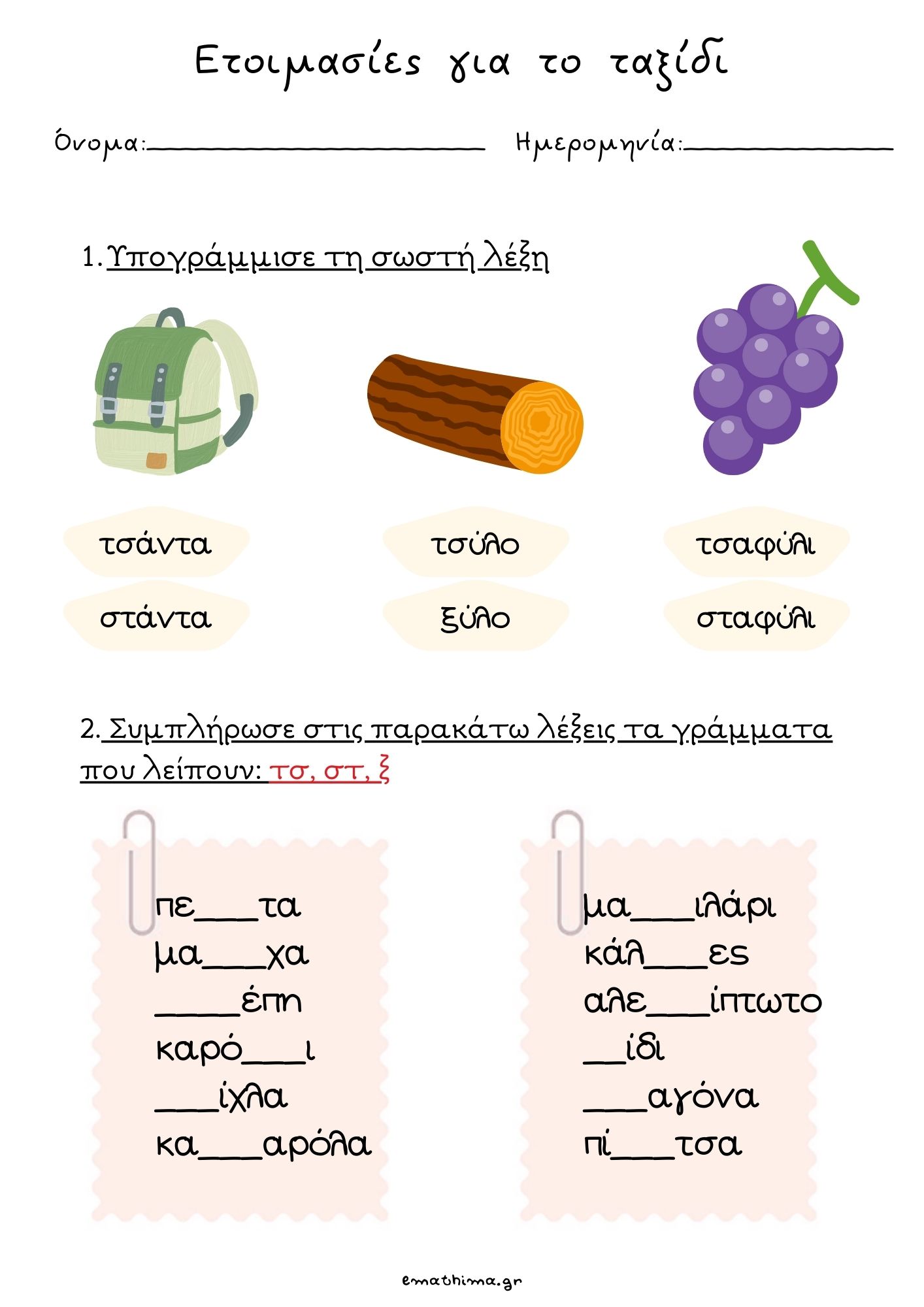 Φύλλο εργασίας τσ-στ-ξ (έγχρωμο)