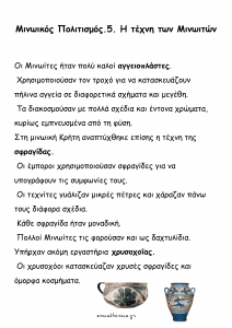 Η τέχνη των Μινωιτών Posted on February 17, 2026 by emathima13 Οπτικοποιημένο σχεδιάγραμμα Περίληψη Ερωτήσεις-Απαντήσεις κατανόησης πηγή: Markostzimas πηγή: Marilenanaki https://www.youtube.com/watch?v=p0tH4Oa0904 Η ΤΕΧΝΗ ΤΩΝ ΜΙΝΩΙΤΩΝ-ΙΣΤΟΡΙΑ Γ ΤΑΞΗ from Maria Froudaraki