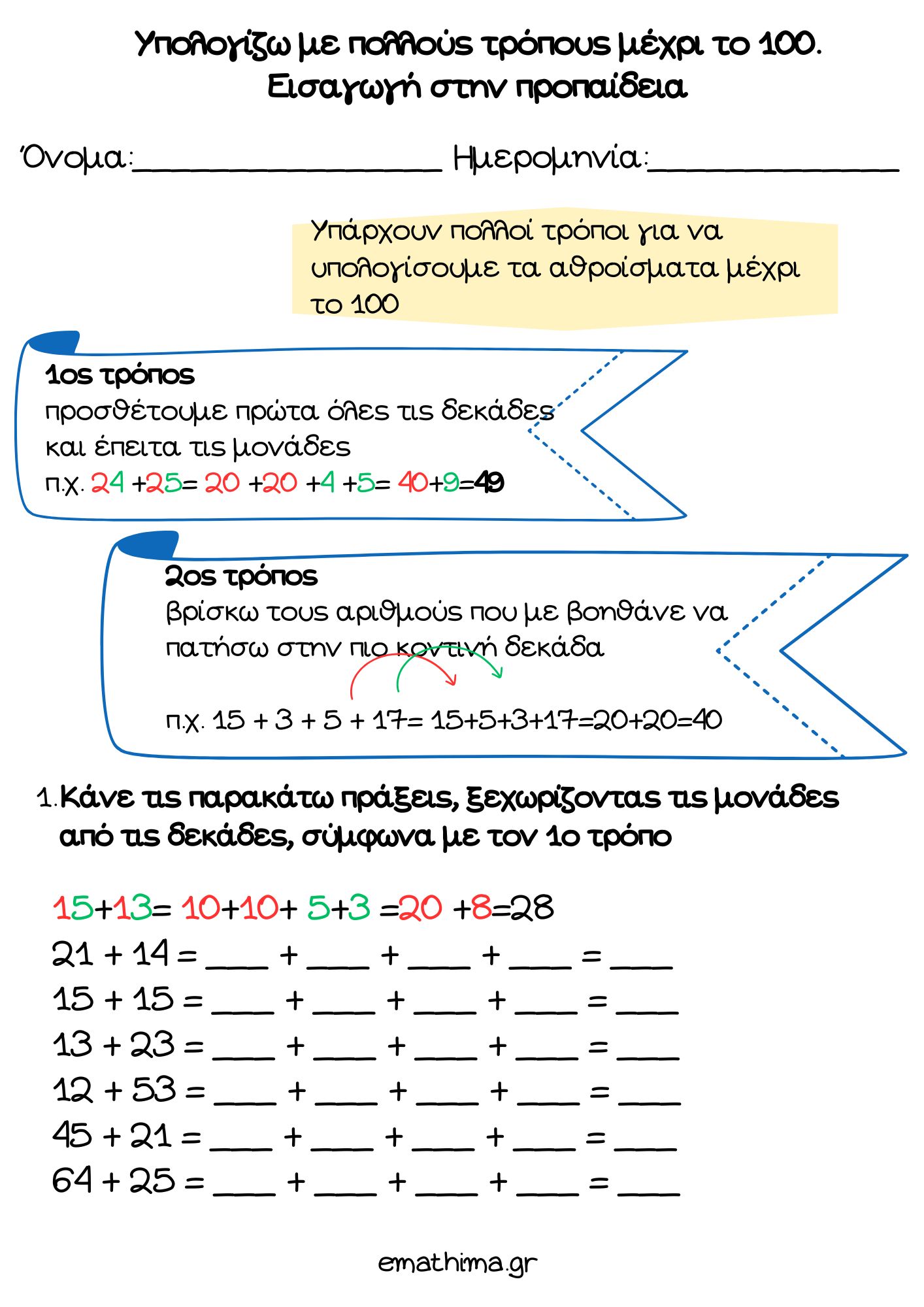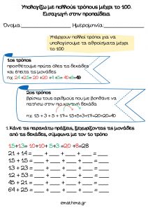 Υπολογίζω με πολλούς τρόπους μέχρι το 100-Εισαγωγή στην προπαίδεια