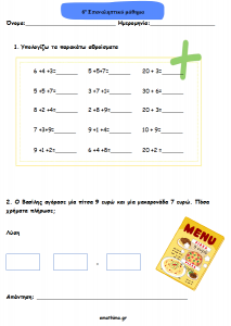 PictureΠατήστε τον παρακάτω σύνδεσμο για να κατεβάσετε και να εκτυπώσετε εντελώς δωρεάν ένα επαναληπτικό φυλλάδιο με ασκήσεις της 6ης ενότητας των μαθηματικών.
