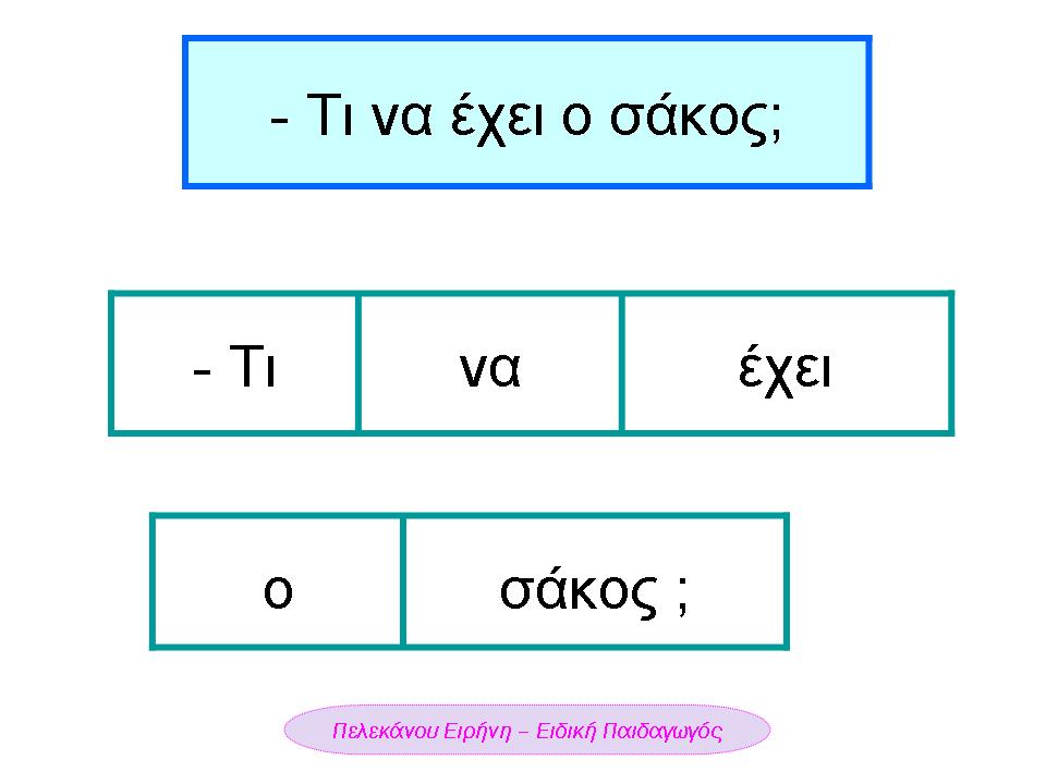 Επισημαίνεται η έννοια του ρήματος και η ρηματική κατάληξη -ω (Τι κάνεις; Βουτάω) σε αντιπαράθεση με την κατάληξη -ο των ουδετέρων (το σωσίβιο). Οι μαθητές ενθαρρύνονται να δείξουν με παντομίμα λέξεις/ενέργειες που απαντούν στην ερώτηση “Τι κάνεις” και τις γράφουν. Π.χ. εγώ γράφω, εγώ διαβάζω