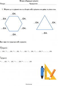 • Χρησιμοποιούν το χάρακα για να μετρούν το μήκος των πλευρών απλών γεωμετρικών σχημάτων
