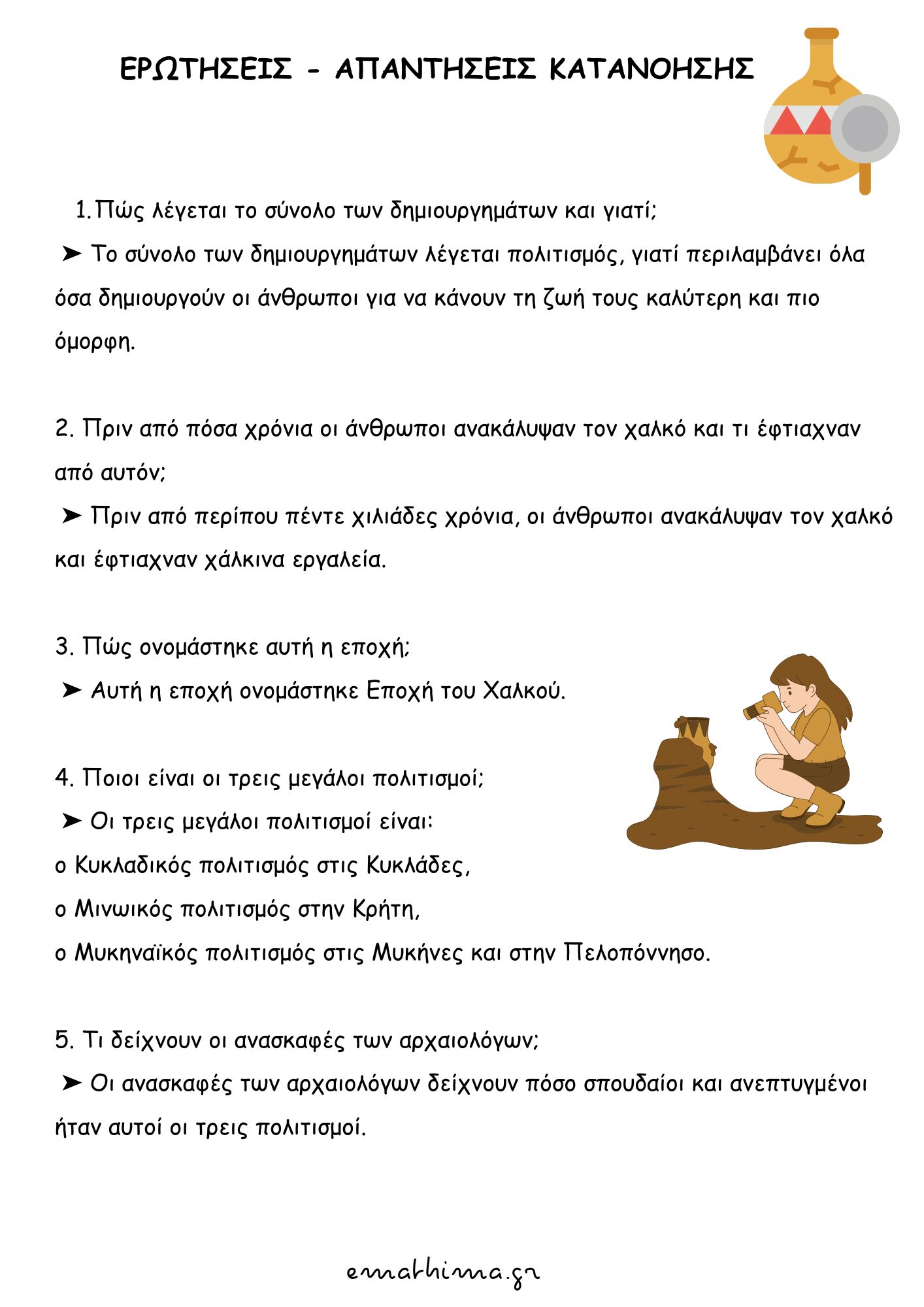 • Να εθιστούν στην παρατήρηση και περιγραφή αρχαιολογικών ευρημάτων