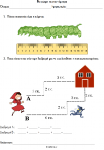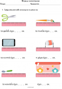Οι μαθητές θα πρέπει να μπορούν να μετρούν μήκη και να συγκρίνουν τις μετρήσεις τους με εκατοστόμετρα